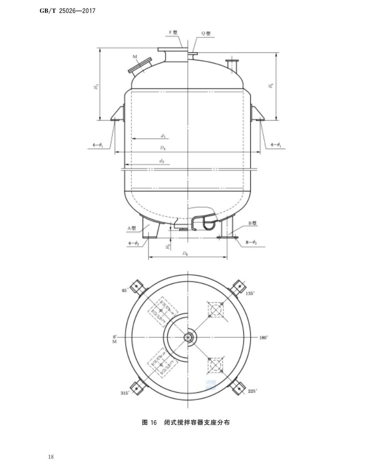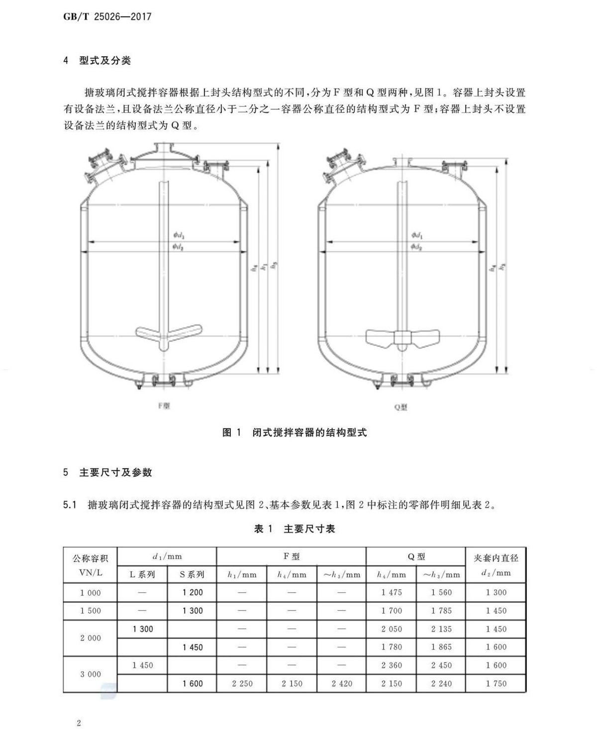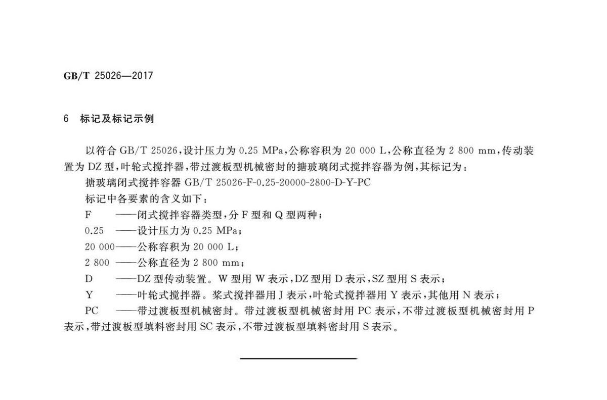 GBT25026-2017搪玻璃閉式攪拌容器型式、主要尺寸及基本參數