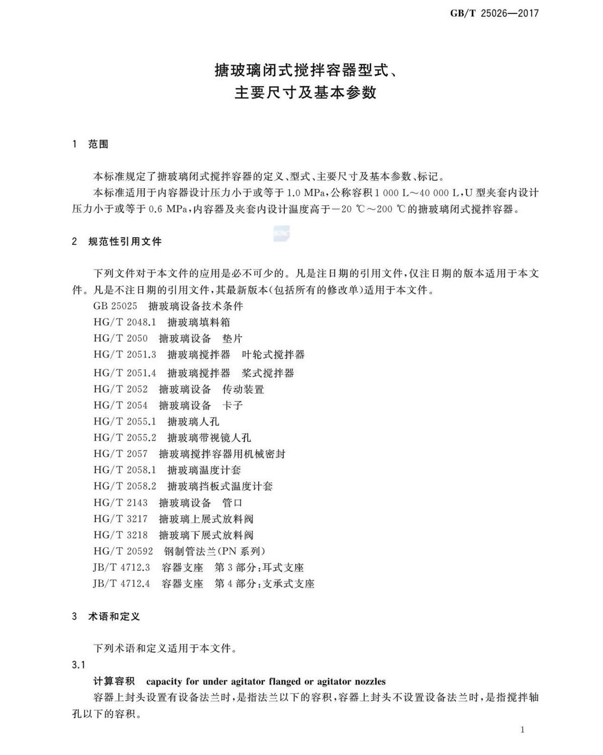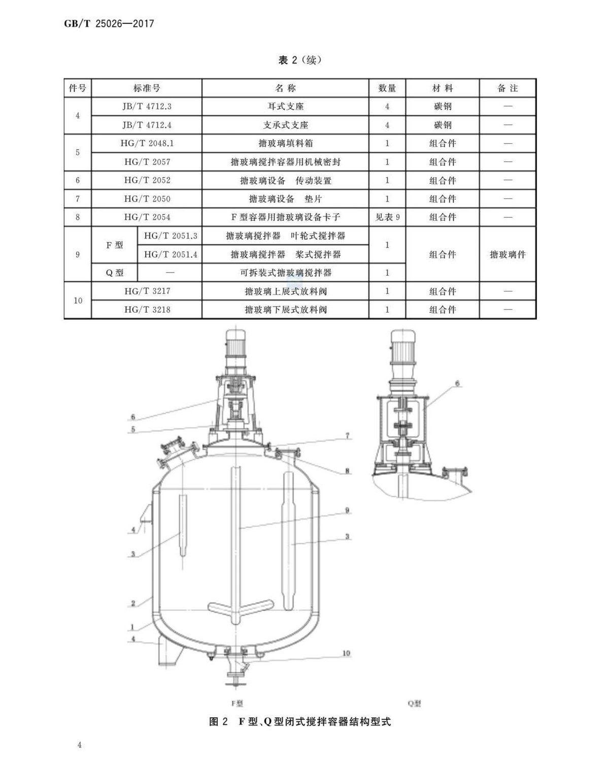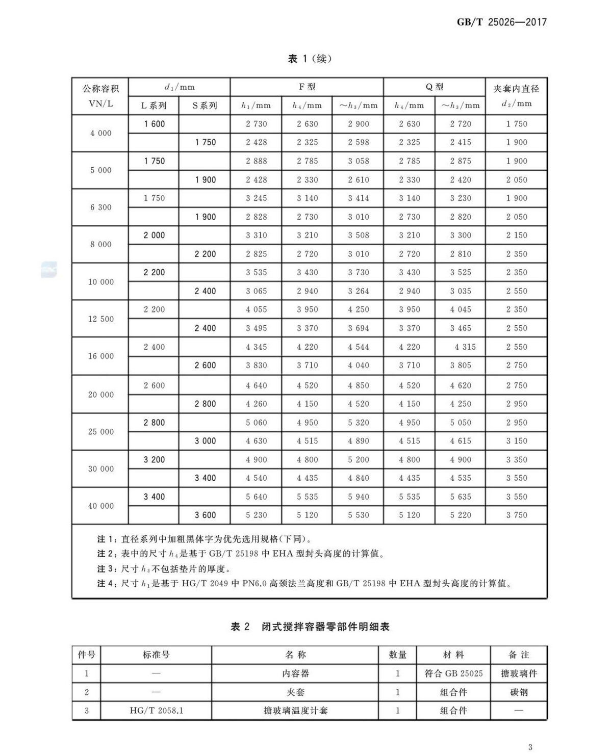 GBT25026-2017搪玻璃閉式攪拌容器型式、主要尺寸及基本參數
