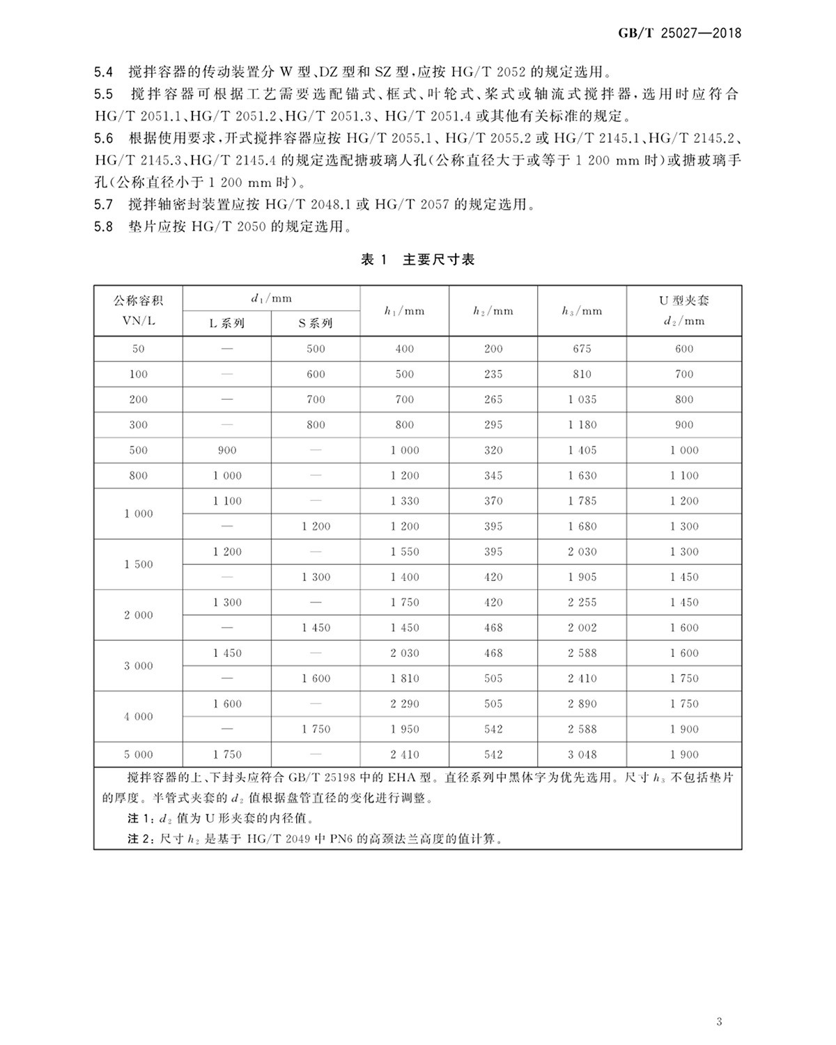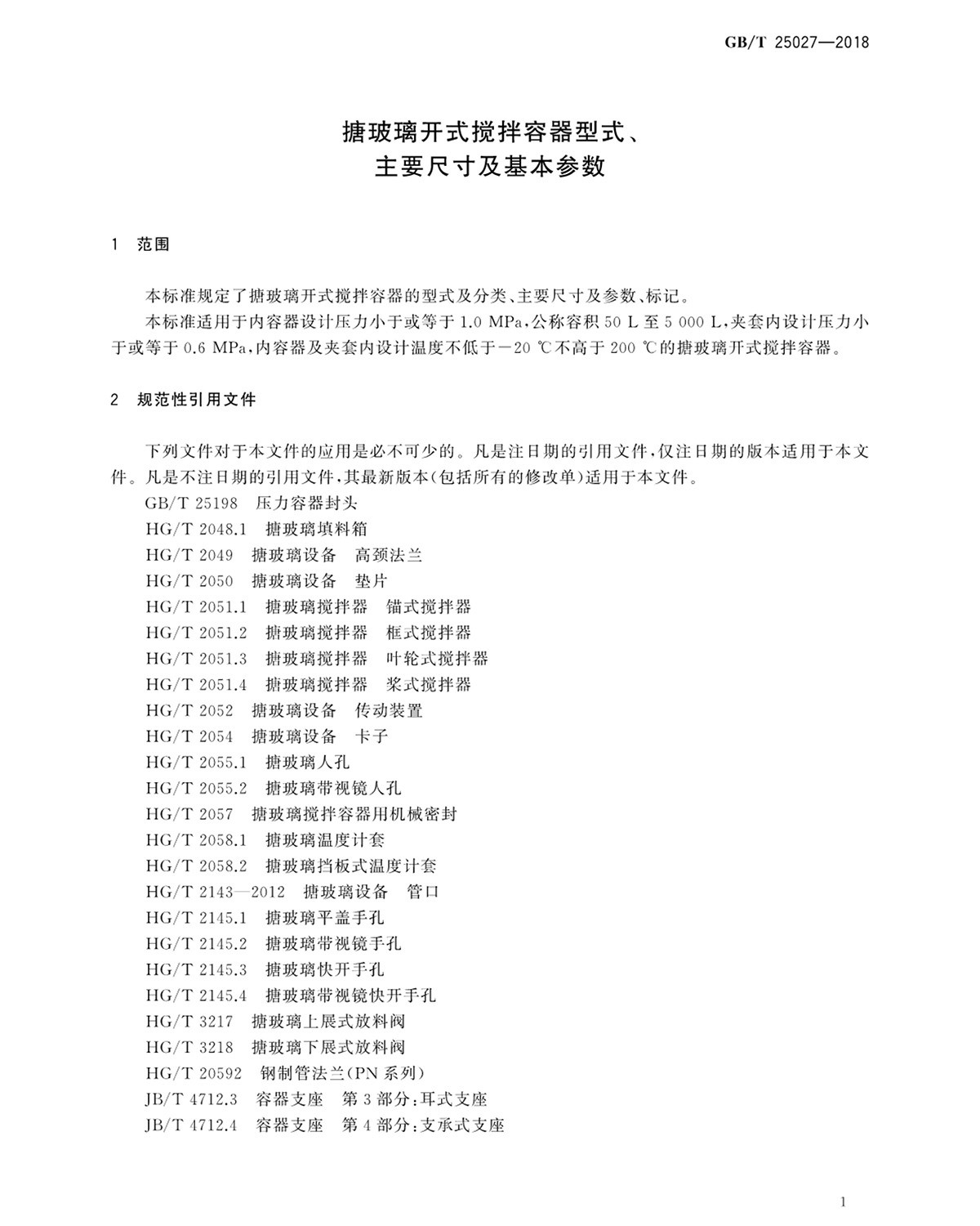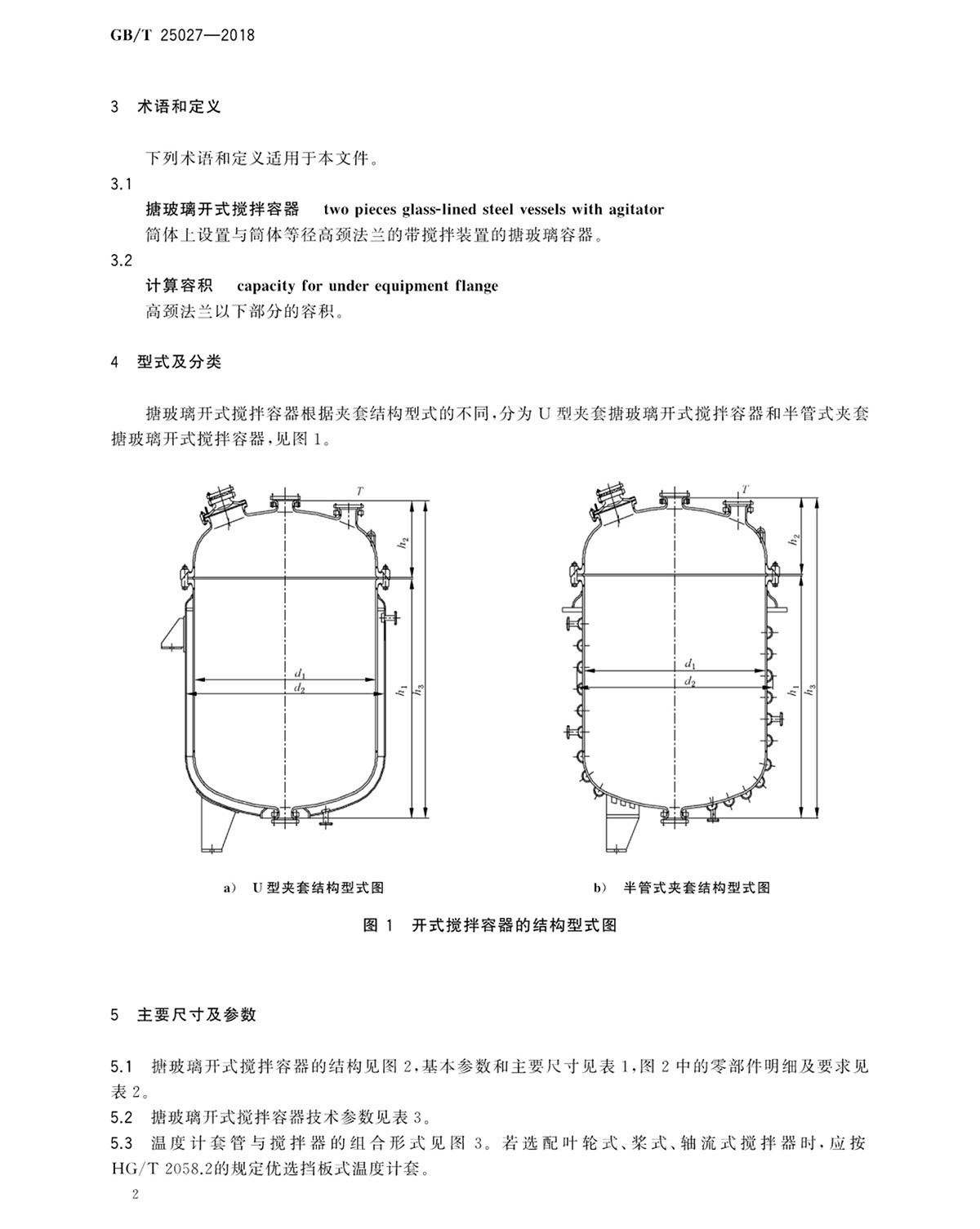 GBT25027-2018搪玻璃開式攪拌容器型式、主要尺寸及基本參數