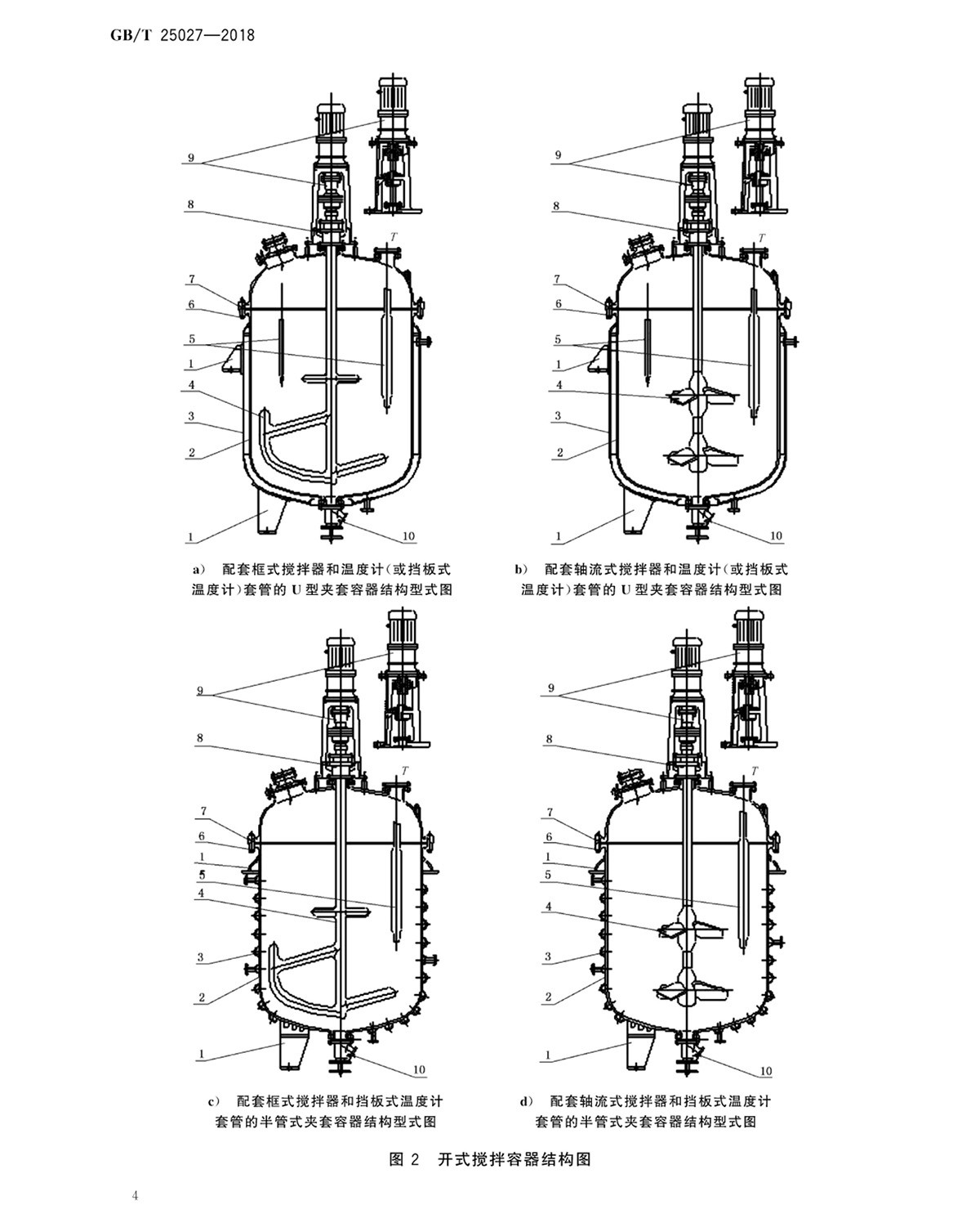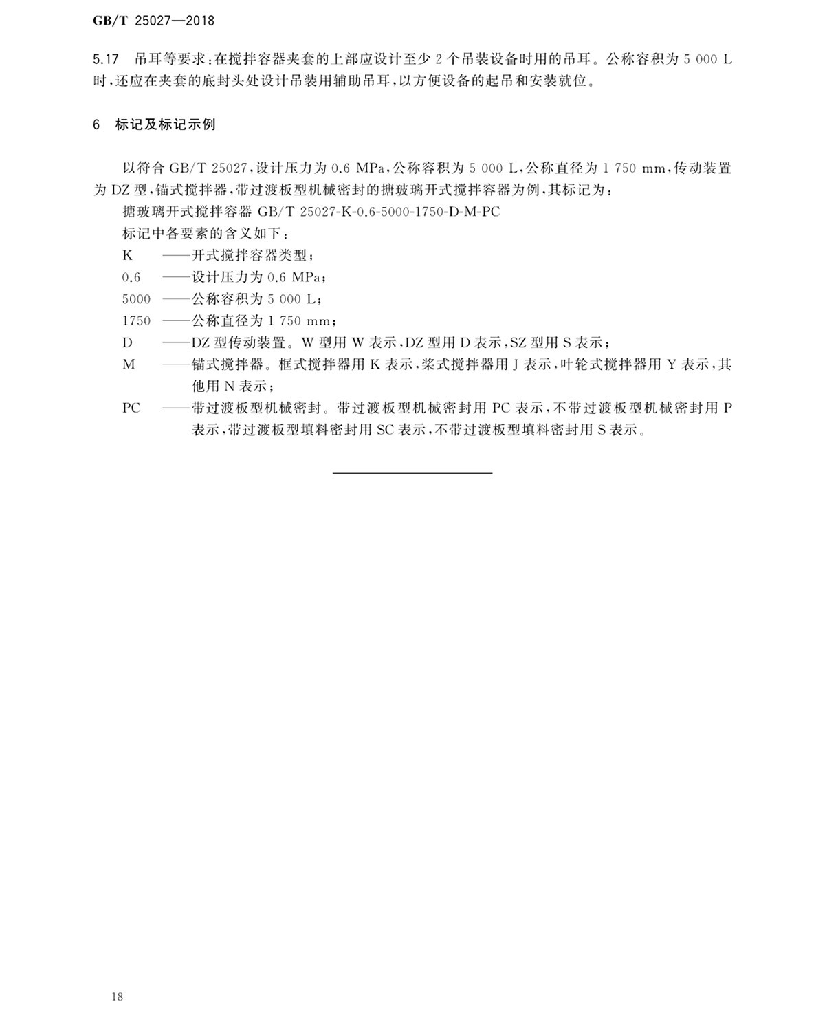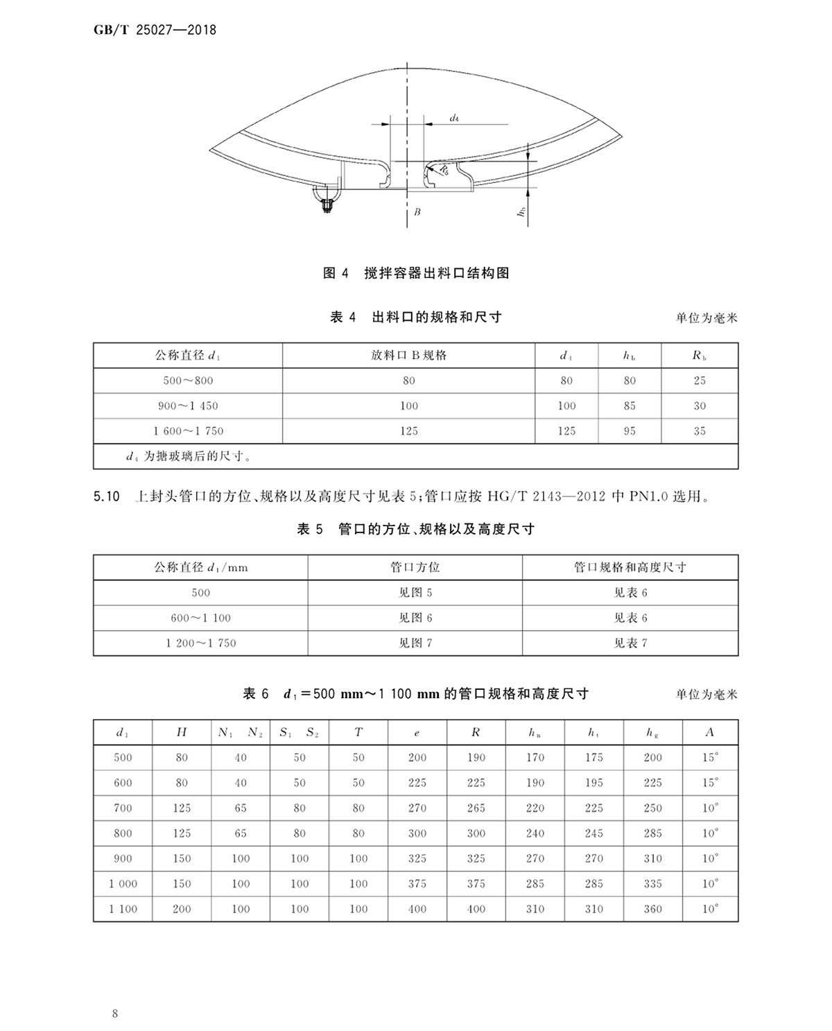 GBT25027-2018搪玻璃開式攪拌容器型式、主要尺寸及基本參數