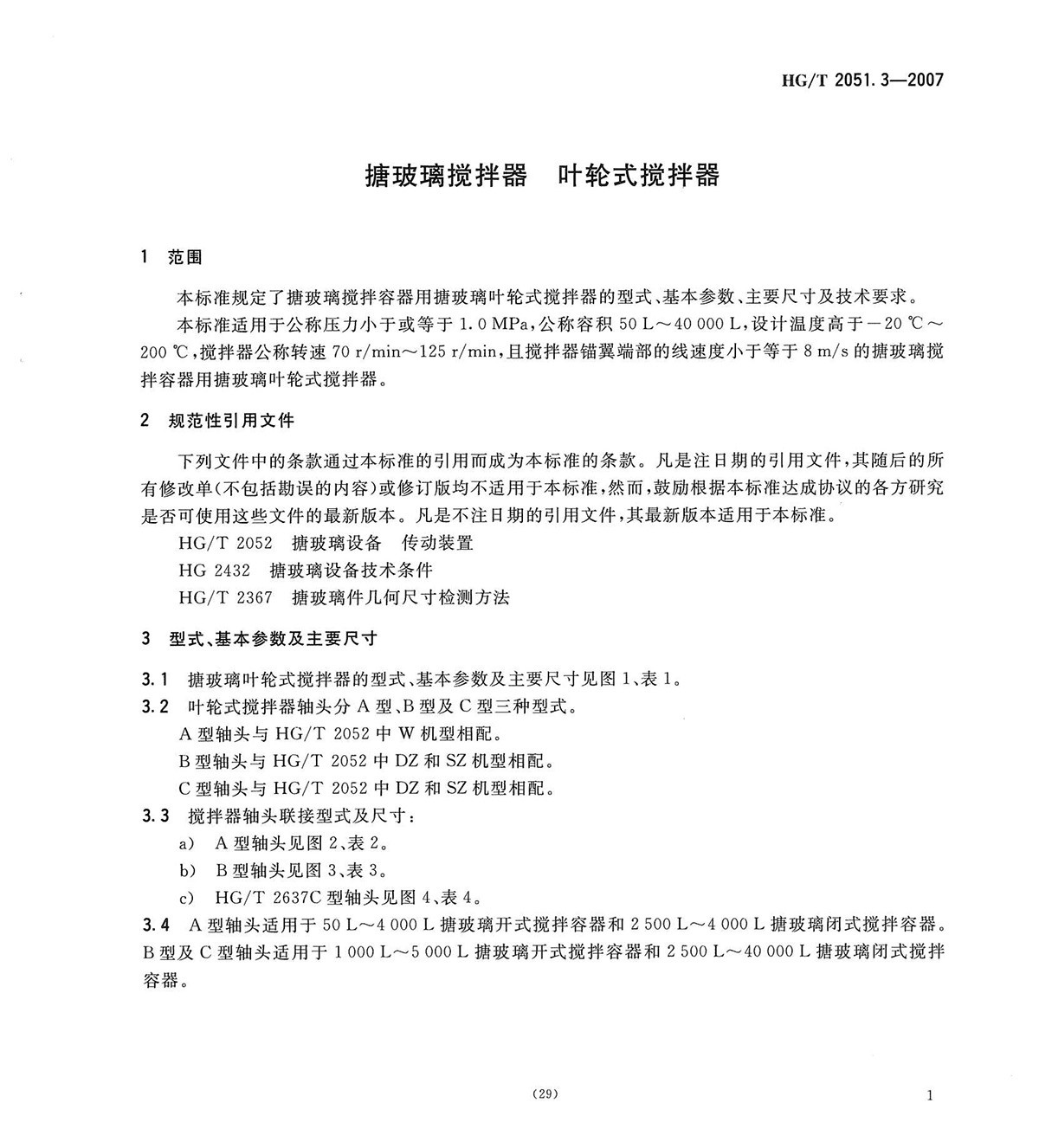 HGT2051.3-2007搪玻璃攪拌器葉輪式攪拌器