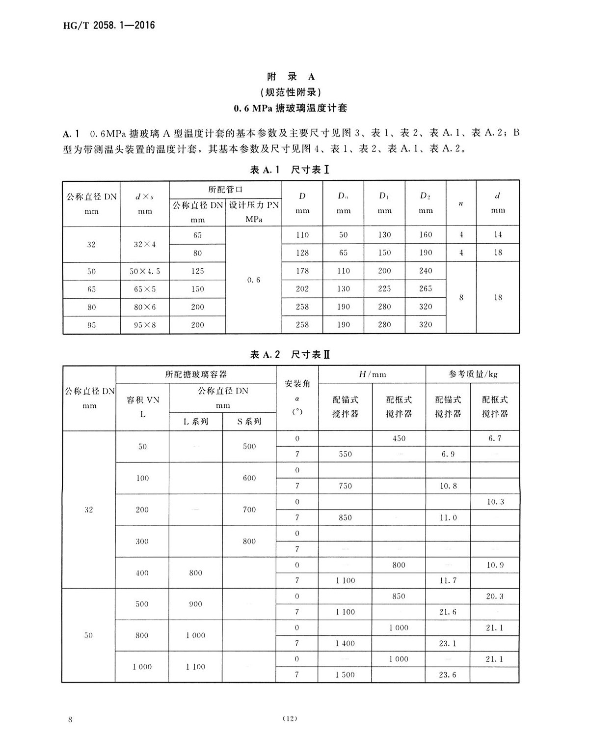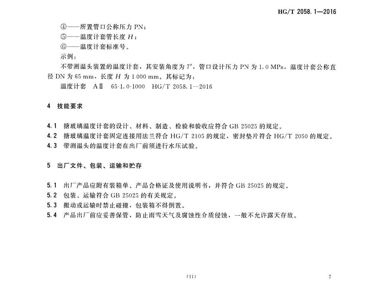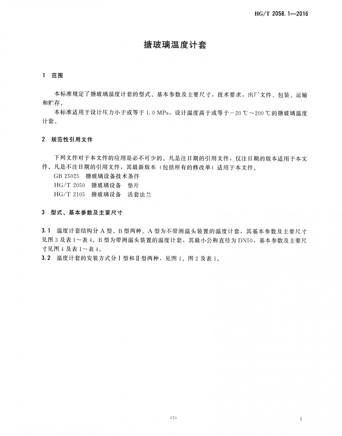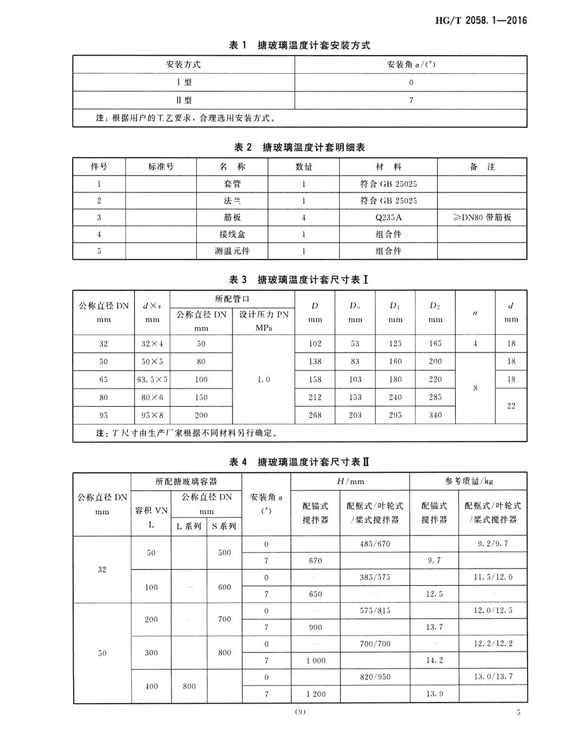HG-T-2058.2-2016搪玻璃擋板式溫度計套