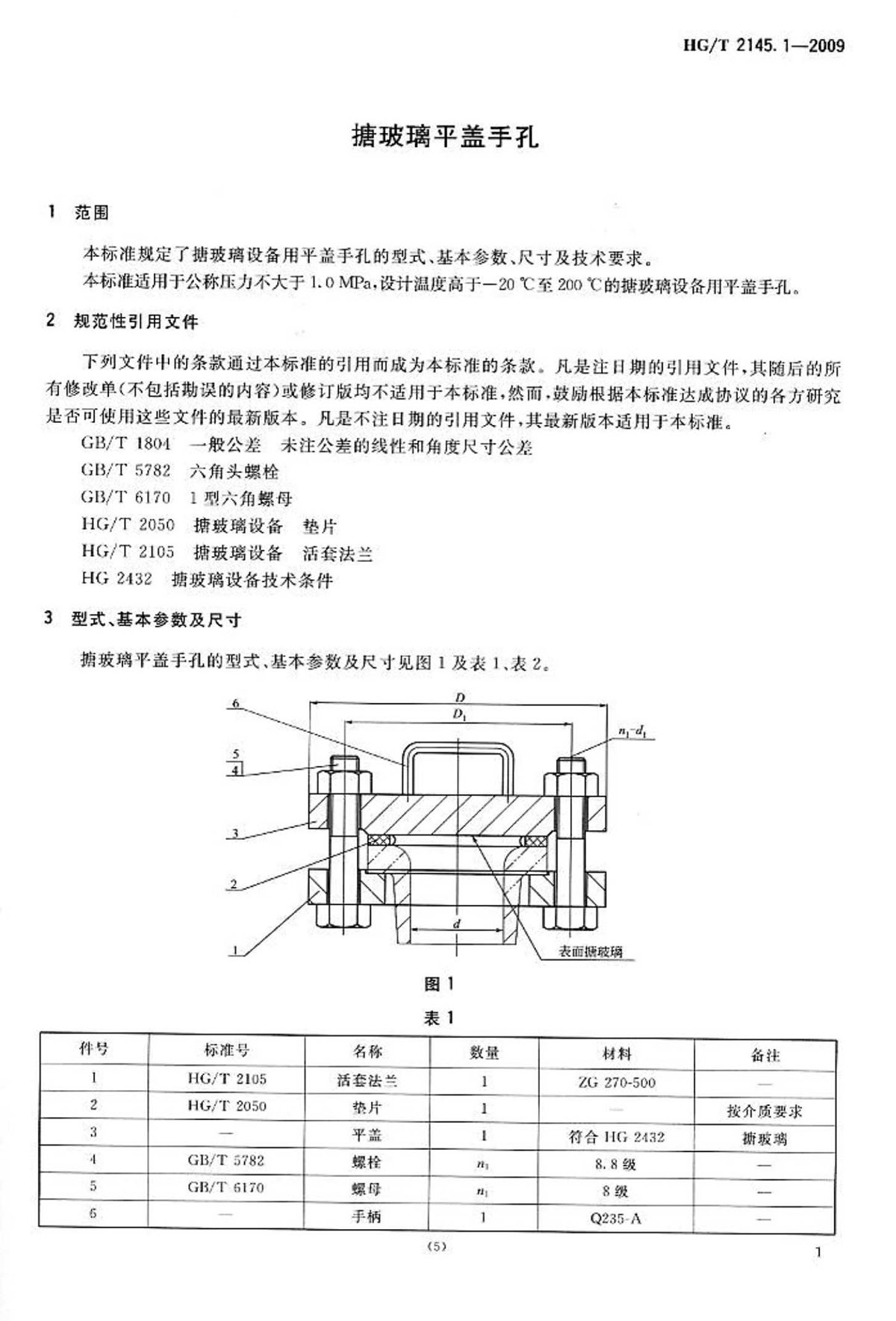 HG-T-2145.1-2009搪玻璃平蓋手孔