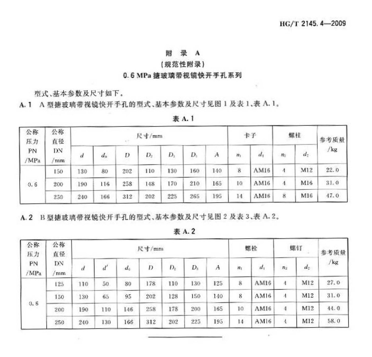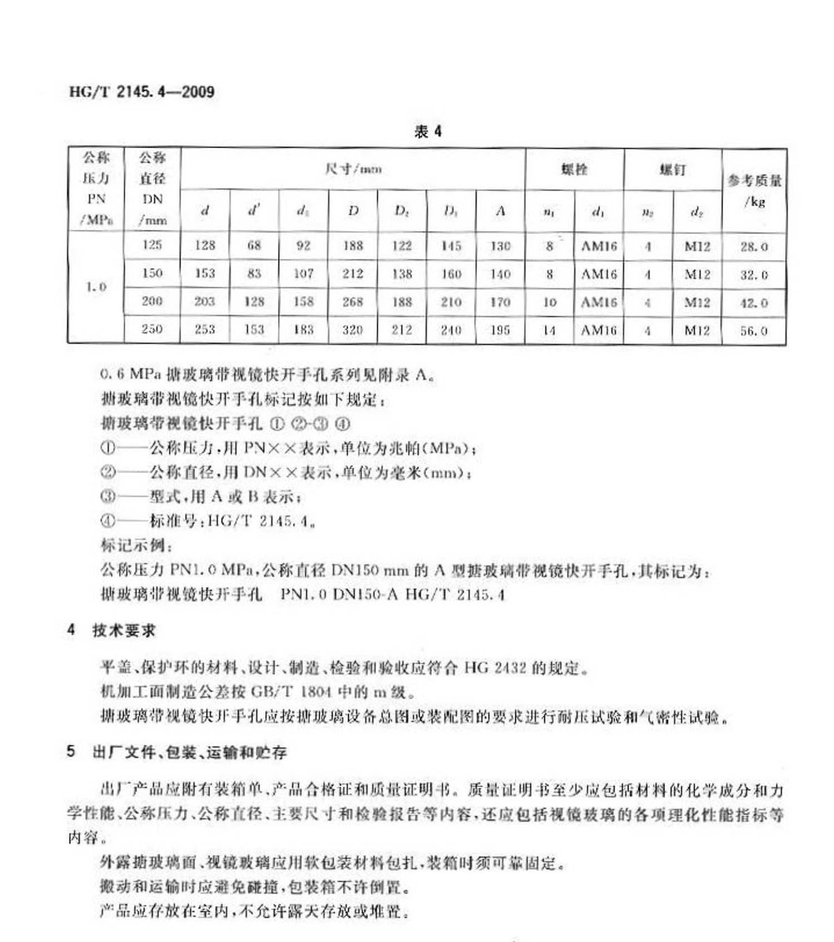 HG-T-2145.4-2009搪玻璃帶視鏡快開(kāi)手孔