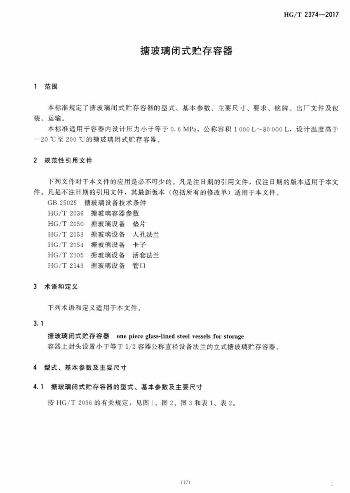 HG-T-2374-2017搪玻璃閉式貯存容器