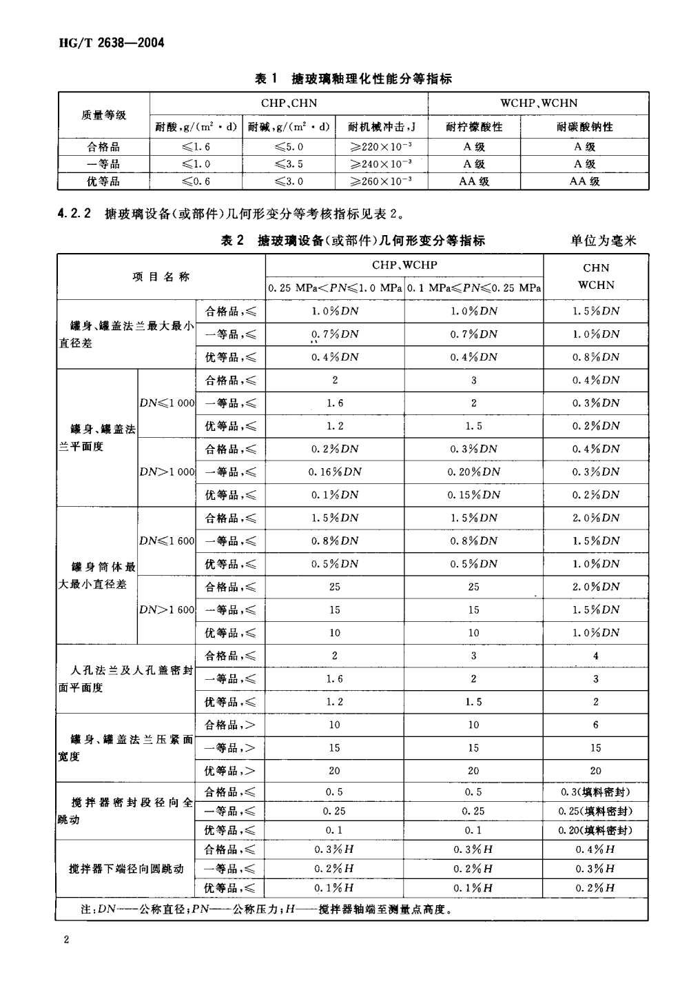 HG-T-2638-2004搪玻璃設備質量分等